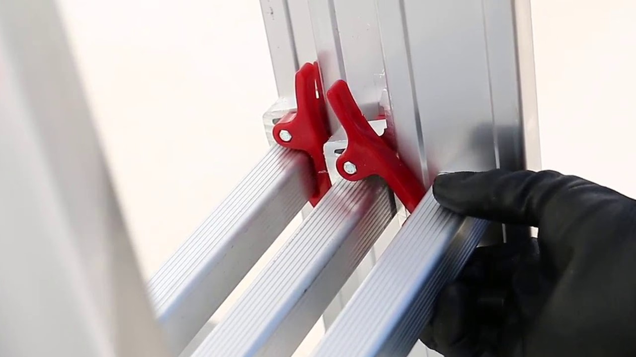 - Innovatief stabilisatiesysteem: Dankzij het slimme ontwerp van de ladder kunnen gebruikers de stabilisatiebalk aanpassen met behulp van handige handels. Dit zorgt voor een solide en stabiele basis, waardoor het risico op ongelukken aanzienlijk wordt verminderd.